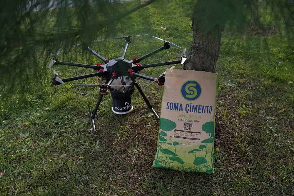 Farklı ve etkili bir çalışma yürüterek fark yaratan, fark yaratmanın da ötesinde doğaya değer katan bir proje ortaya koymak istediklerini dile getiren Keşaplı, “Bu anlamda Ecording firması ile yolumuz kesişti. Bu firmayla yaptığımız anlaşma ile yılda 50 bin tohum topunu, özel dronelar ile Orman Genel Müdürlüğü’ nün belirlemiş olduğu rehabilite edilmek istenen ormanlık alanlara atılmasını sağlayacağız. Bunun için de kullanılan yol, bir karekodun okutulmasından ibaret. Böylece tüm müşterilerimiz aldıkları çimento torbasının üzerindeki karekodu okutarak ilk olarak belirlenen Mersin bölgesindeki bir alanın rehabilitasyonunda sedir ve kızılçam ağaçlarından birini seçerek tohumun toprakla buluşmasını sağlamış oluyorlar” dedi.